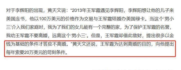王军霞提出,若每年能得到20万美元,她便考虑不离婚。